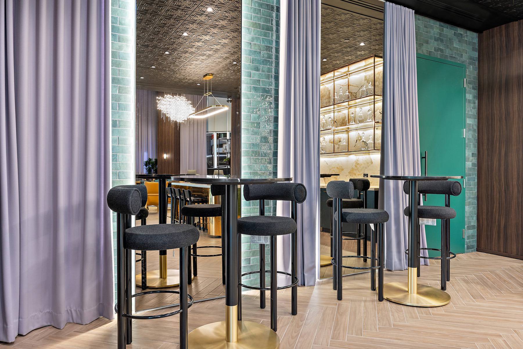 - Mix of lounge seating and high-top tables