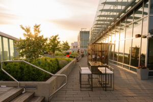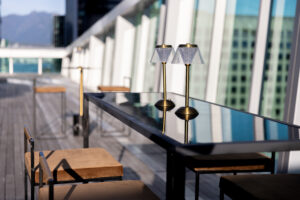 Our stylish and highly functional space, features a sweeping rooftop terrace and a light-filled indoor conference centre. The space offers sophisticated lounge furnishings, a kitchenette, dedicated office table and chairs, and comprehensive AV capabilities to support seamless meetings and presentations. Centrally located in the heart of downtown Vancouver, the venue is framed by breathtaking city, ocean, and mountain views – creating a truly elevated event experience from day to night.